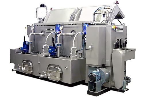 Las lavadoras tipo túnel BAUFOR pueden incluir etapas como uno o más lavados, enjuague, soplado, secado y procesos complejos como fosfatados, decapados, etc.